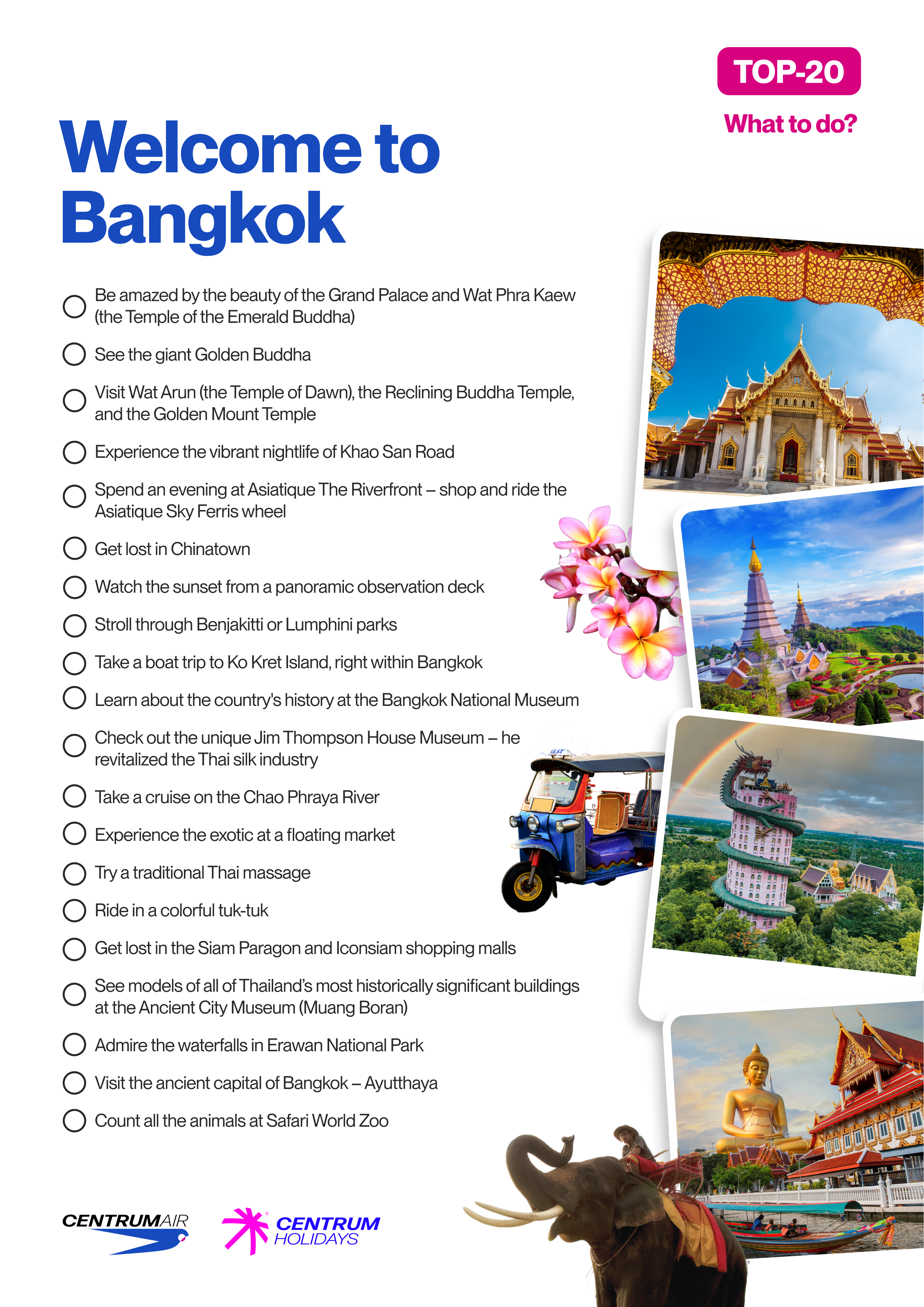 Bangkok is a city that never slows down. Golden temples stand next to neon lights, markets meet skyscrapers, and street food becomes part of the culture. This checklist will help you navigate its rhythm and build your perfect journey – from first steps to unforgettable discoveries.