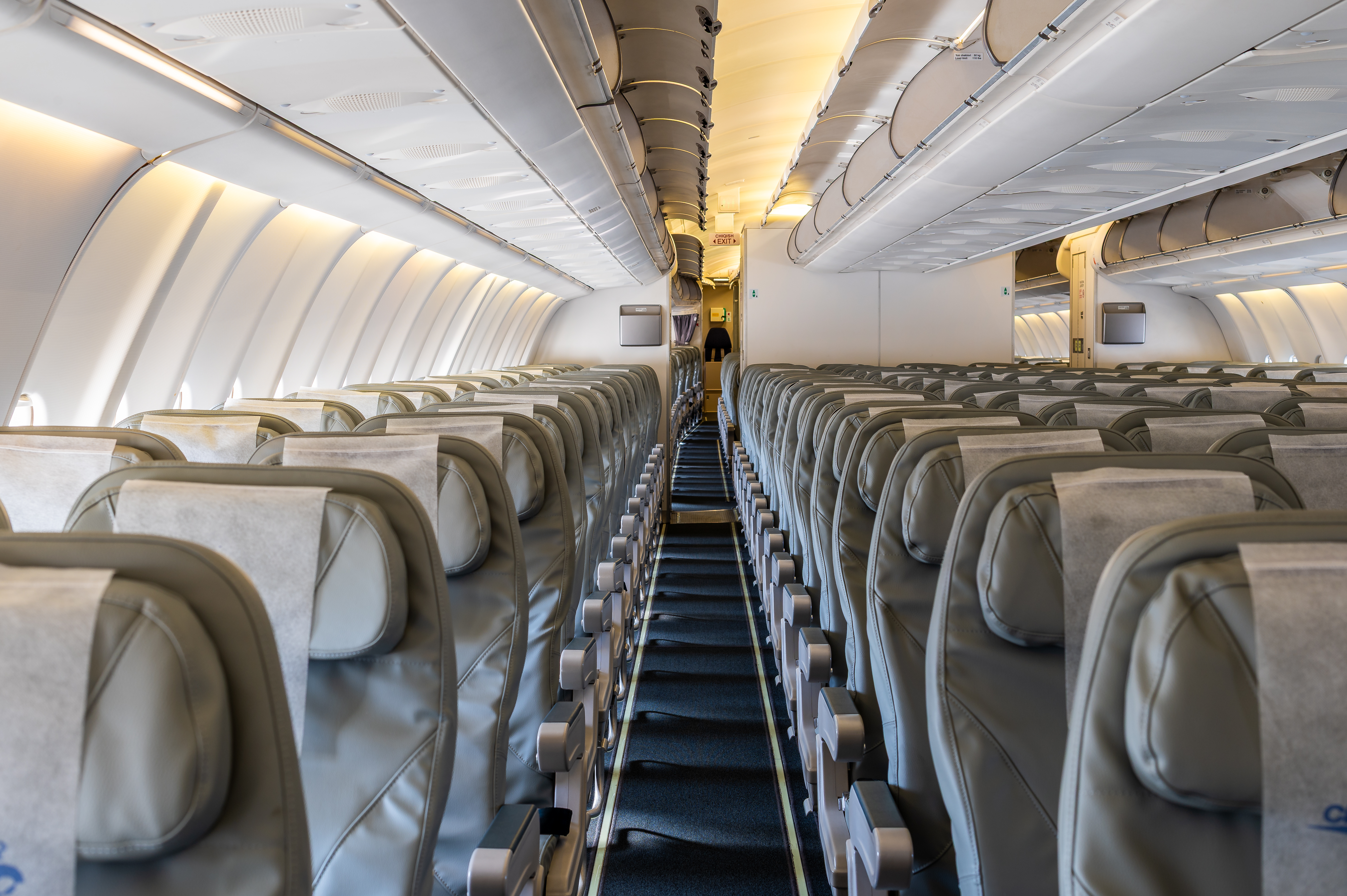 The cabin is configured in a full-economy layout with 347 seats. Seat pitch is approximately 60 cm, providing comfort even on extended flights. The 2–4–2 configuration offers optimal convenience for both couples and families traveling together.