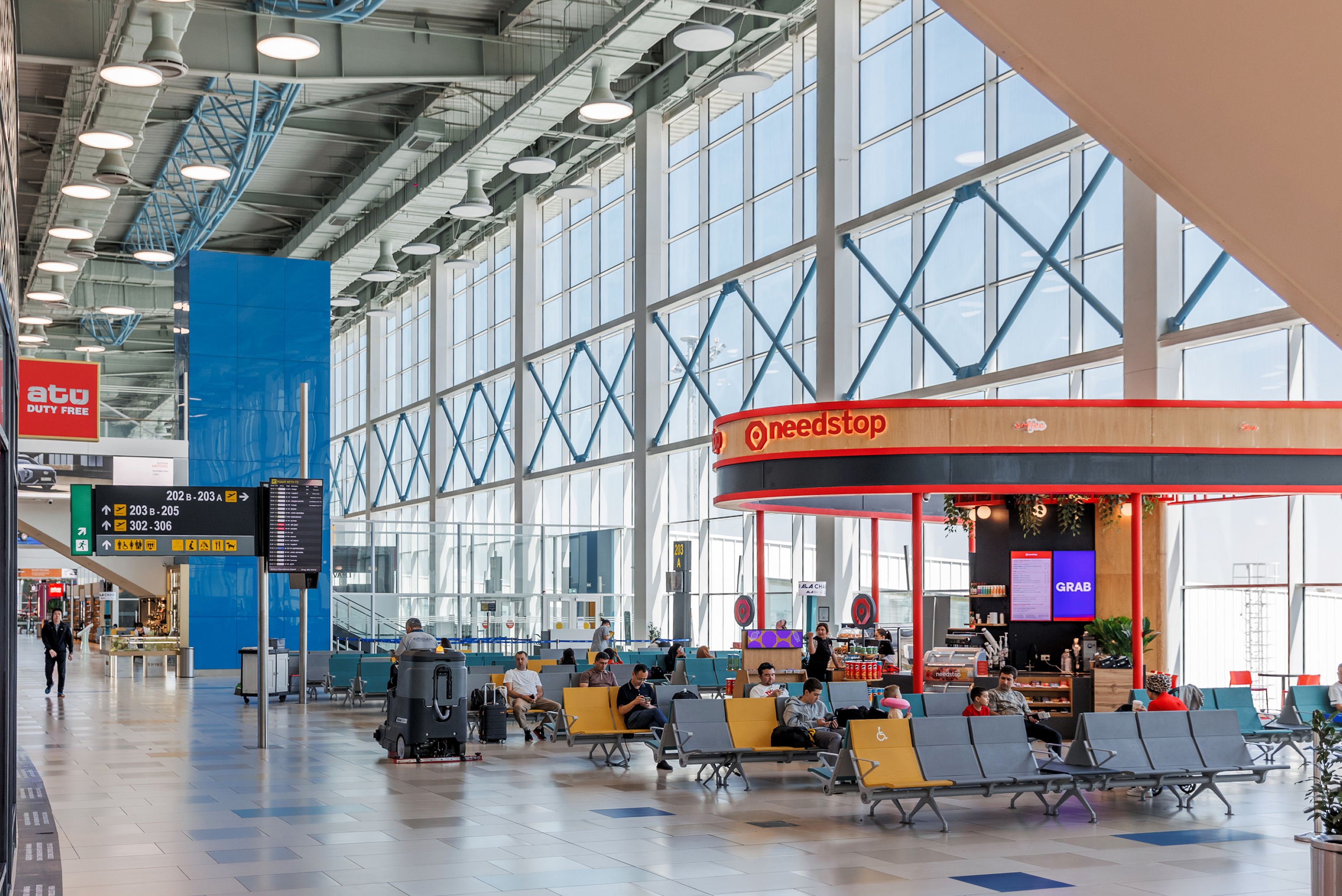 ● qulayliklar: bolalar maydonchasi, sokin hudud, ona va bola xonasi, namozxonalar, kapsulali mehmonxona, uy hayvonlari uchun dam olish joyi, Duty free do‘konlari;