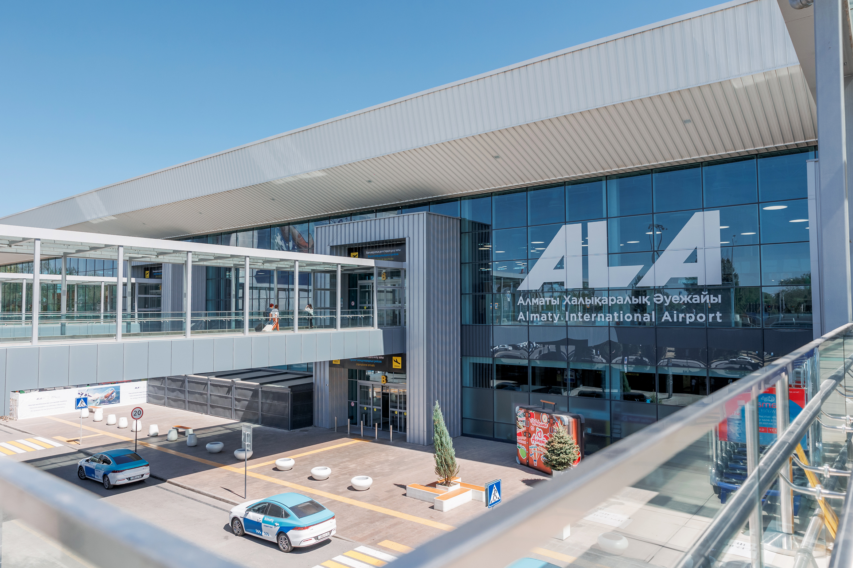 ● Master-rejaning "Horizon" deb nomlangan birinchi bosqichi 2025-yilda boshlanib, 2028-yil oxirigacha davom etadi; Olmaota aeroporti quyidagi shahar va mamlakatlarni bog‘lamoqda: ● 44 ta yo‘lovchi aviakompaniyasi; ● 82 ta yo‘nalish, shundan 63 tasi xalqaro; ● 29 ta mamlakat. *2025-yil davomida Olmaota aeroportining xalqaro terminali: ● 50 dan ortiq ro‘yxatdan o‘tish joylari; Aytgancha, biz Qozog‘istonning boshqa shaharlari: Ostona, Uralsk va Aqtauga ham parvozlarni amalga oshiramiz. Xalqaro terminal milliy uslubda bezatilgan bo‘lib, mehmonlarni mamlakat madaniyati bilan tanishtirishga xizmat qiladi.